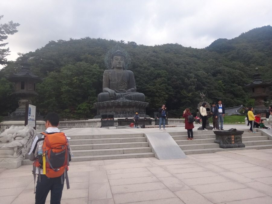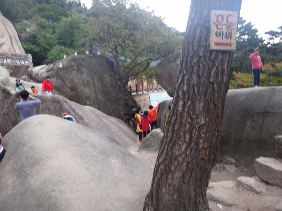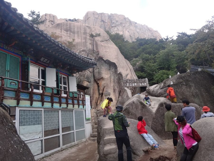 좁은 암릉 공터에 사람이 많이 붐빈다. 기념품과 음료 판매대까지 있어 좁은 장소가 시장터 같다. 서둘러 인증사진 남기고 하산길에 든다.(16;10) 흔들바위와 계조암 일별하고 조금 내려서다가 좌측으로 달마봉 들머리 확인하고 서둘러 하산한다. 내원암과 안양암 지나고 신흥사 지나 A지구 버스정류소에서 도착한다. 택시타고(5천원) C지구 주차장에 도착 산행 마감한다[4.5km][75분]