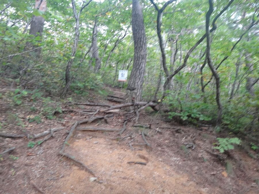 왔던 길로 두 번의 게곡을 건넌다. 2번째 계곡을 건넌후 3거리로 돌아와 우향 진행하여야 하는데 중간에 적당한 곳에서 우향 숲길로 무찔러 진행 3거리에서 올라오는 넓은 등산로를 만난다. 여기서 혼선이 온듯하다.