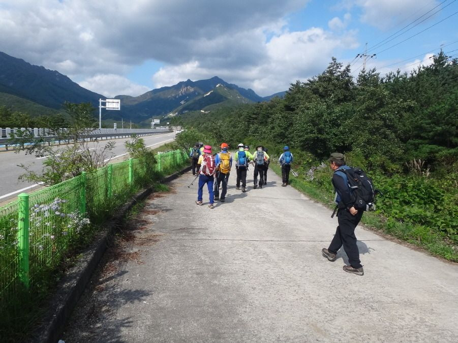 신도로와 미시령방향입니다. 1차2차 1대간9정맥때 지나던 추억이 새롭습니다. 지하도를 통과 하기 위해 도로따라 걷습니다.