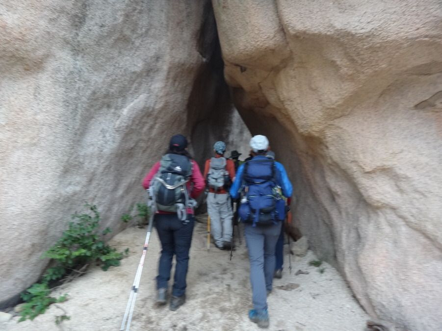 메인 등산로에 합쳐저서 약25m 진행후 직진 능선길로 진행하지 말고 좌측 평탄길을 이어가야한다.(cf요주의 지역이다.)그러면 서봉 아래 안부 호랑이굴로 연결된다. 서봉아래 안부를 목표로 하여 좋은 계곡길로 들어서면 자연스럽게 이어진다.