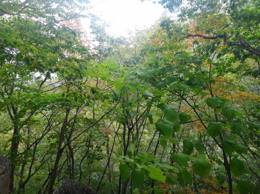 지하터널 빠져 나와 미시령 방향 구도로를 조금 걷다가 왼쪽 족적이 보이는 숲길로 들어선다. 계곡을 건너 다시 숲길을 횡단하여 진행 한다. 드디어 폭포민박집에서 올라오는 좋은 길을 만난다. 오지 숲길은 평탄하고 부드럽다.