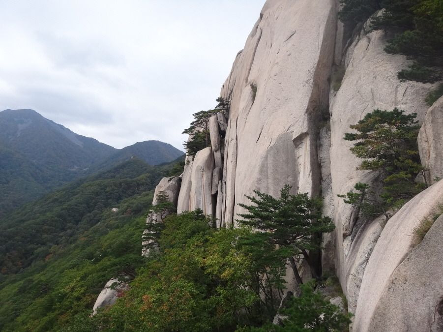 이번 산행은 설악의 여러 코스중 미답인 울산바위 서봉(890m)과 동봉(796m)을 답사하고 하산길에 달마봉(676m)도 연게코져 함 이었습니다. 그런데 알바도 있었고 새코스 개척으로 시간도 생각보다 많이 걸린탓에 달마봉 답사는 다음 날(1년에 1일 개방하는 날)로 미루어야 합니다.