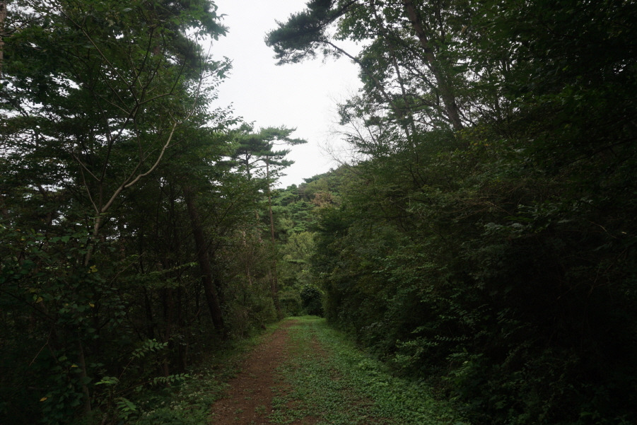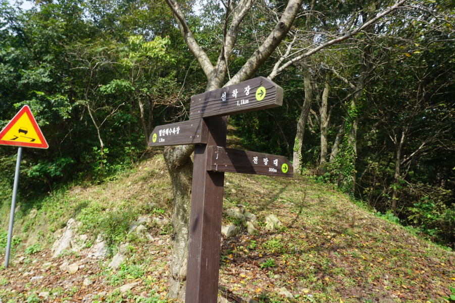 (10;34) 이정표(전망대 300m/벌안해수욕장 1.2km/선착장 1.1km)에서 도로 버리고 우측이정표(전망대 300m) 방향 임도길을 오릅니다