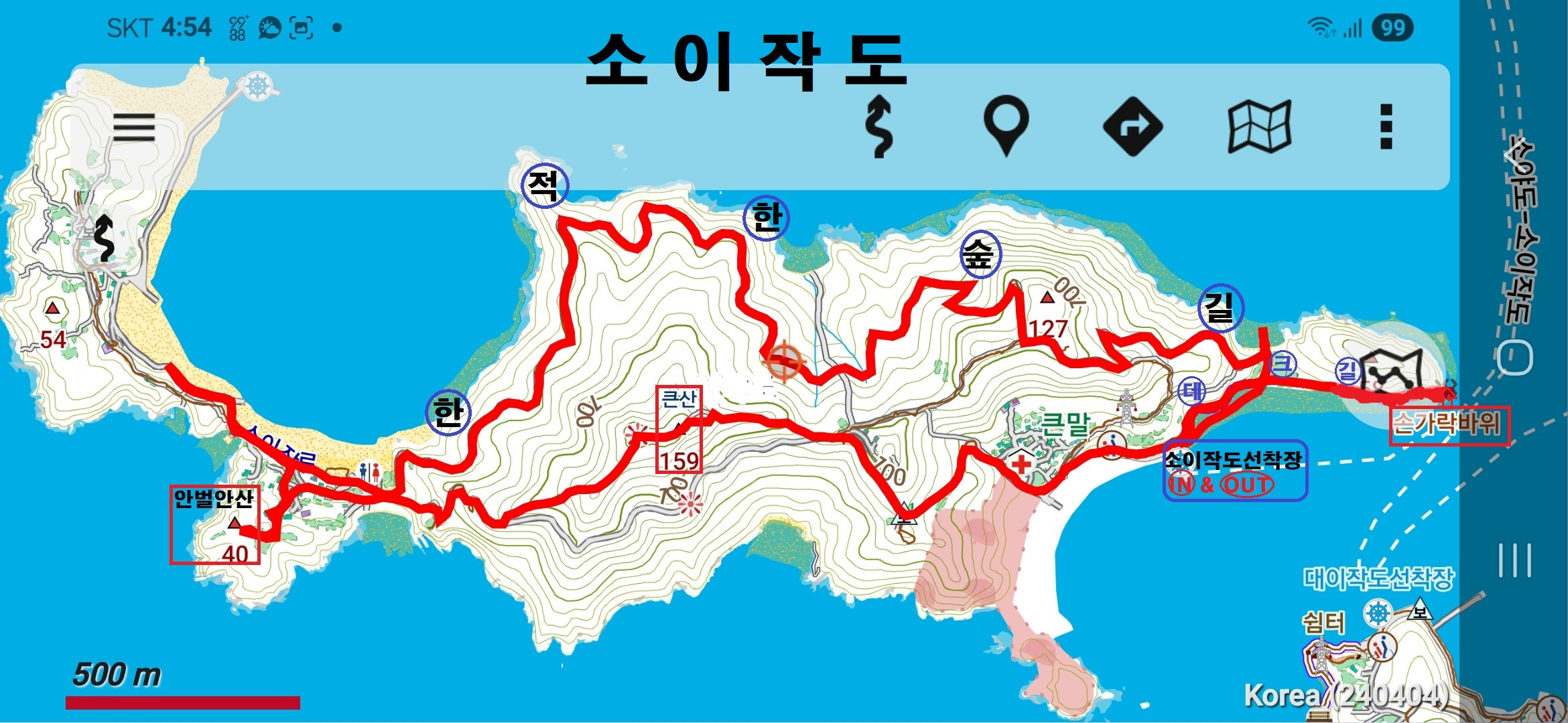 (10;12) 소이작도항 선착장으로 되돌아옵니다. 왕복약 1.3km /22분 소요