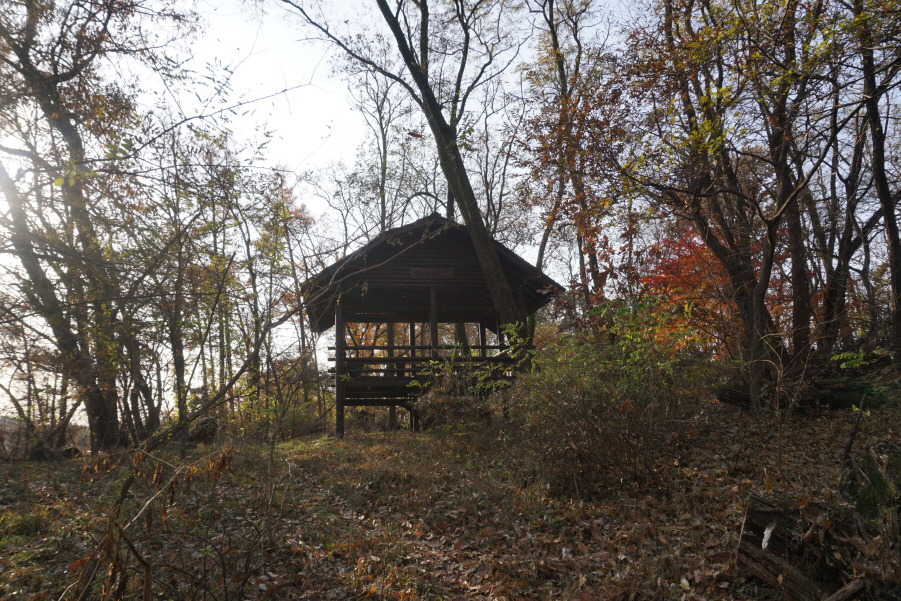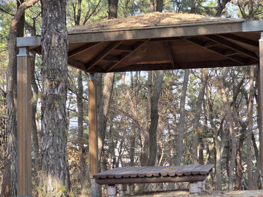 4각 정자와 이정표, 장의자 놓인 정상이다
