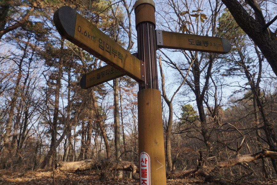 (09;53) 이정표(도솔봉 3.5km/임의부락 0.6km/월평타운 아파트 1.6km)입니다