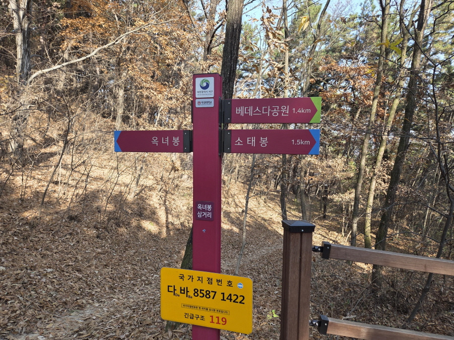 (12;48) 이정표(옥녀봉/베내스다공원1.4km/소태봉 1.5km)입니다