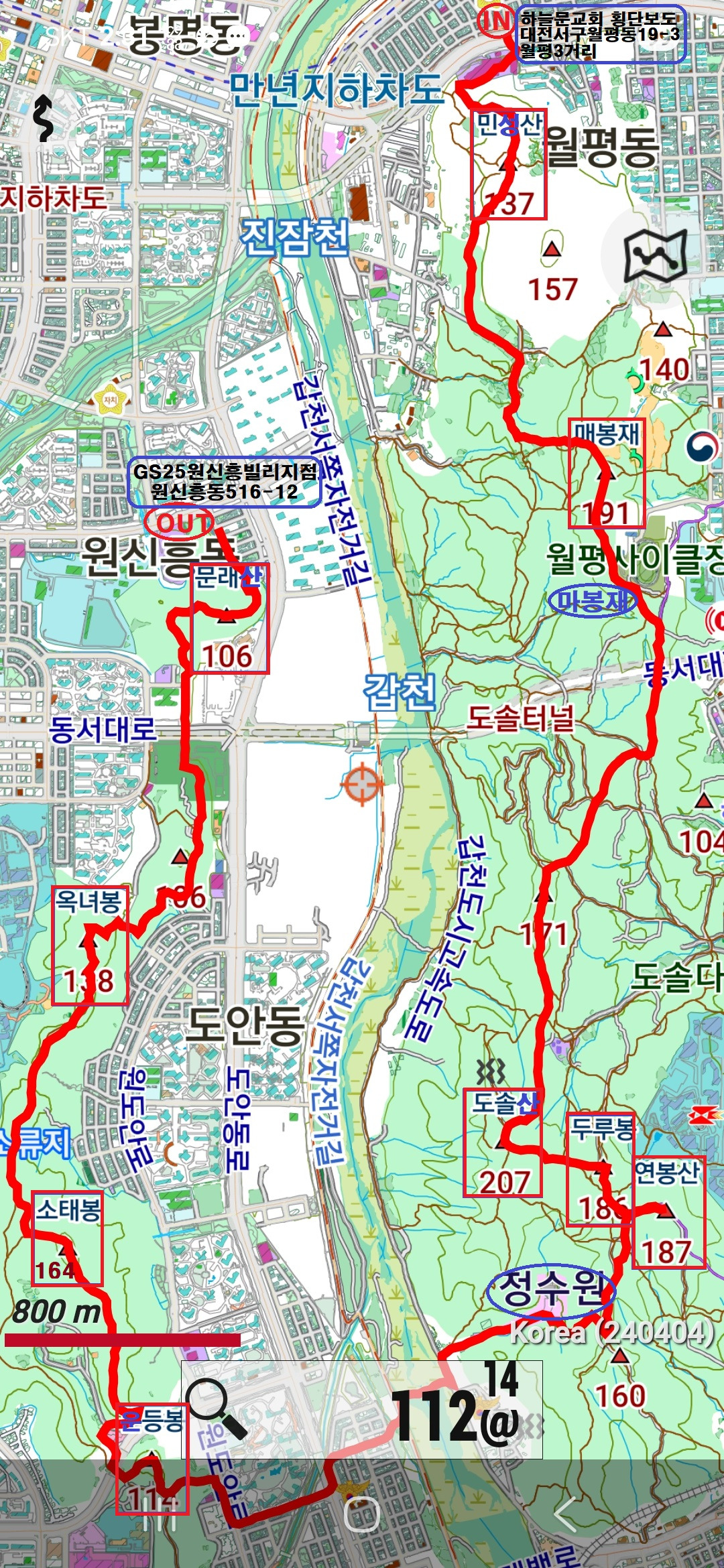 <올 때> 산행종료(13;35) ;원신흥동 516-12 GS원신흥동 빌리지점(13;41)~Kakao택시(9,400원/)~서대전역(14;00~14;50)[50분] 씻고 환복 후 어묵탕, 떡, 빵, 과일 안주에 혼술 혼밥 후