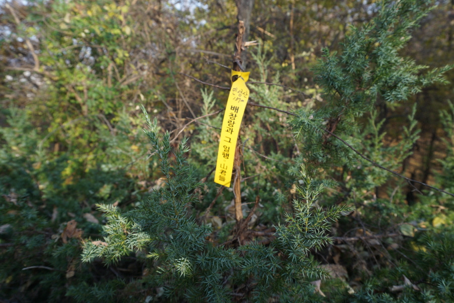 (09;28) 어차피 청소되겠지만 민성산(137m) 정상 표지기 부착합니다.
