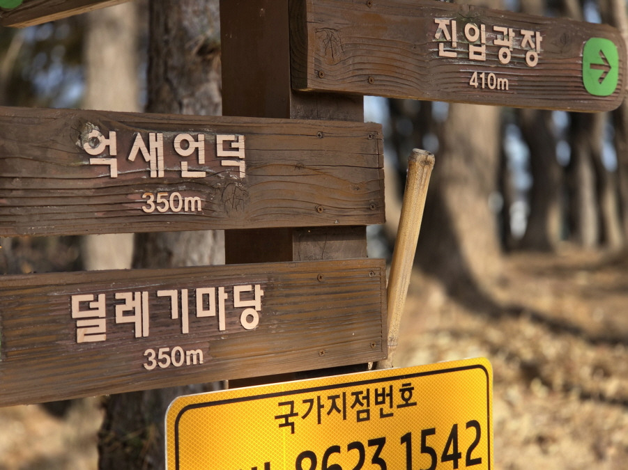 (13;23) 이정표(억새언덕 350m/덜레기마당 350m/진입광장 410m)입니다