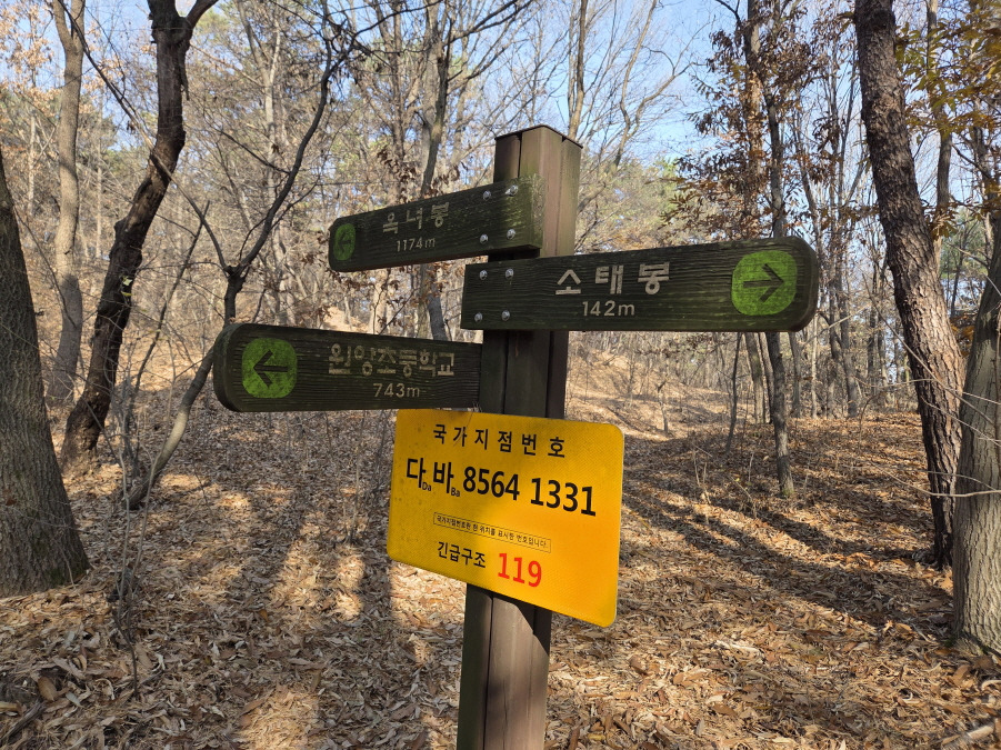 (12;32) 3거리이정표 (옥녀봉 1174/원앙초등학교 743/소태봉 142)입니다