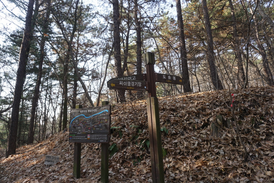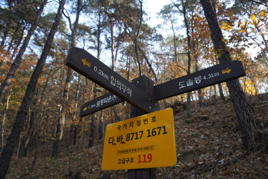 (10;27) 이정표(도솔봉 1.8km/사이클경기장 0.9km/대전여고)입니다