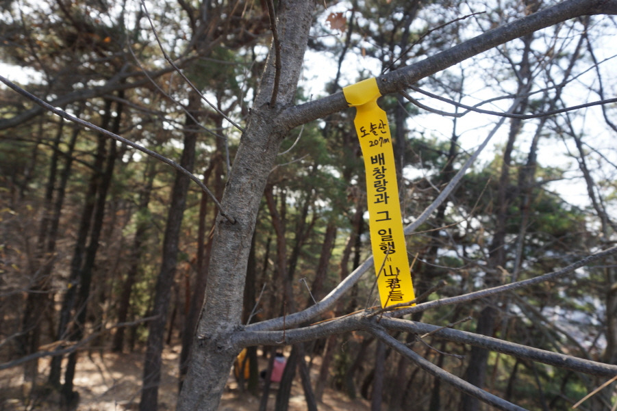 (10;54) 도솔산(207m) 정상 표지기입니다. 선답자님들 표지기는 사람이 많이 다니는 곳이라 청소된듯싶습니다