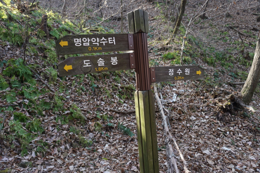 (11;27) 이정표(정수원 0.2km/명암약수터 0.1km/도솔봉 1.8km)입니다