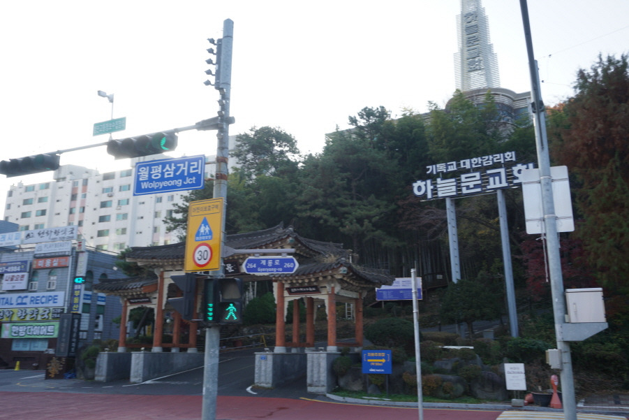 (09;05) 횡단보도 건너 하늘문 교회 입구 데크길이 들머리입니다