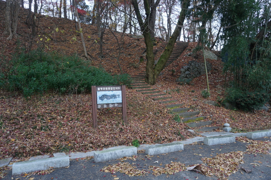 (09;12) 월평공원 종합안내도 서있는 목책계단길이 실제 등산로 입구입니다.
