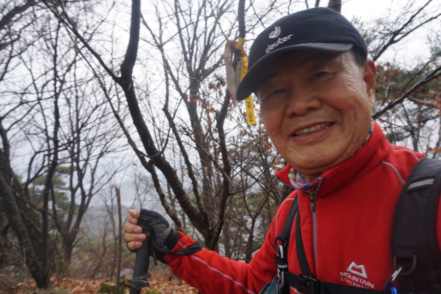 산아일여 님, 맑음님, "계룡산 391m 배창랑과 그 일행=山君들" 표지기 걸린 정상이다