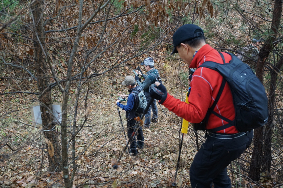 (12;14) 편안하게(?) 허리길 진행 하다가 능선에 붙어 진행하는데, 맥길로 진행하여 뒤따라 온 조종창 님이 "호치" 안 가느냐고 원인 (warning) 합니다. 아뿔싸 "호치"를 빼먹었군요. 약 500m 거리 호치로 Back 할 순간입니다