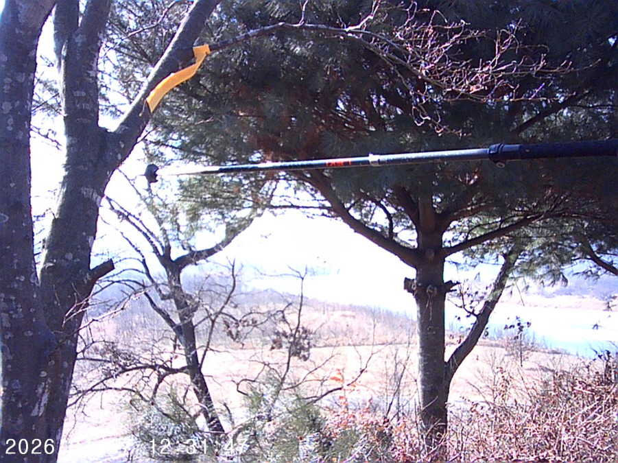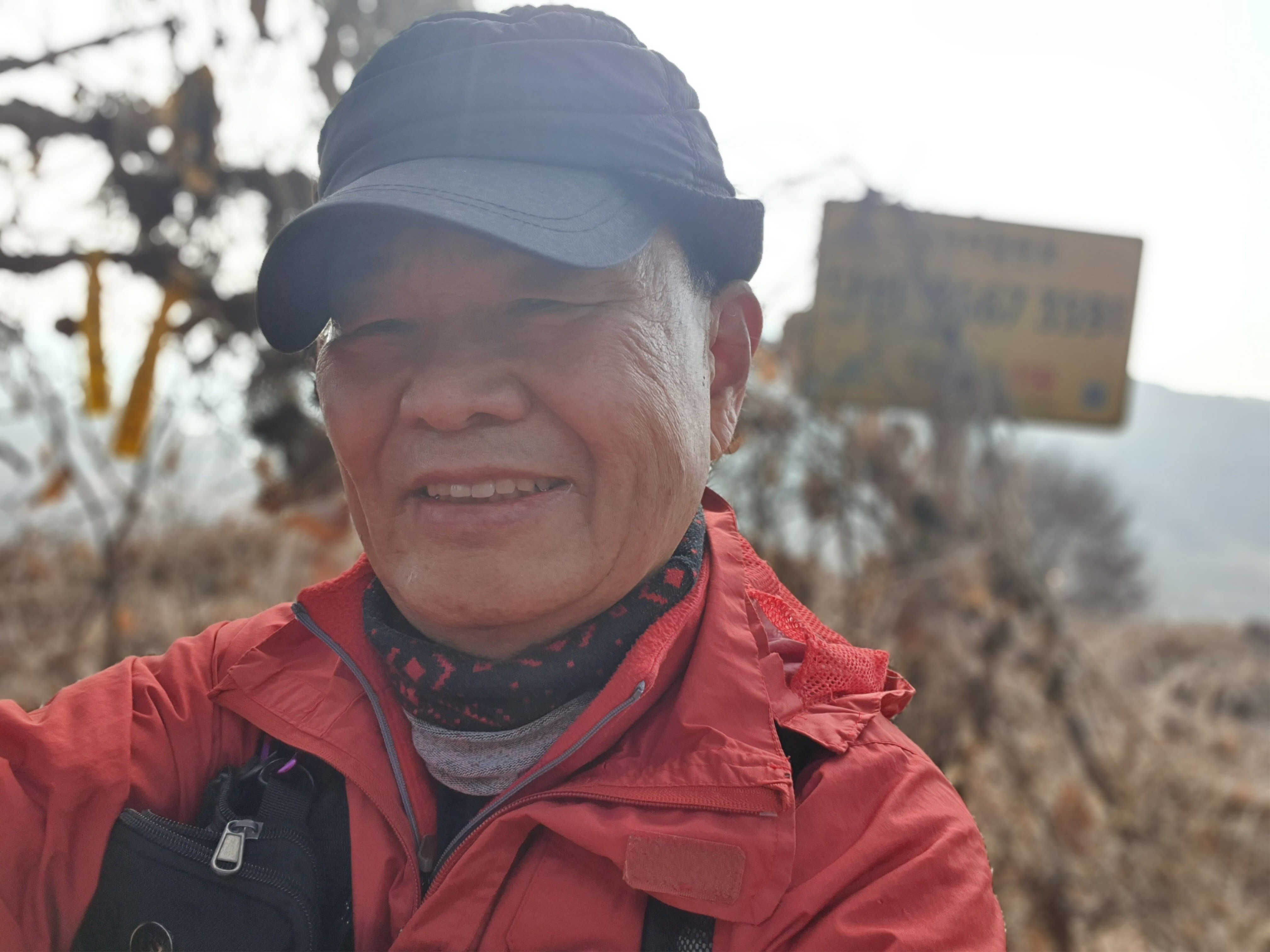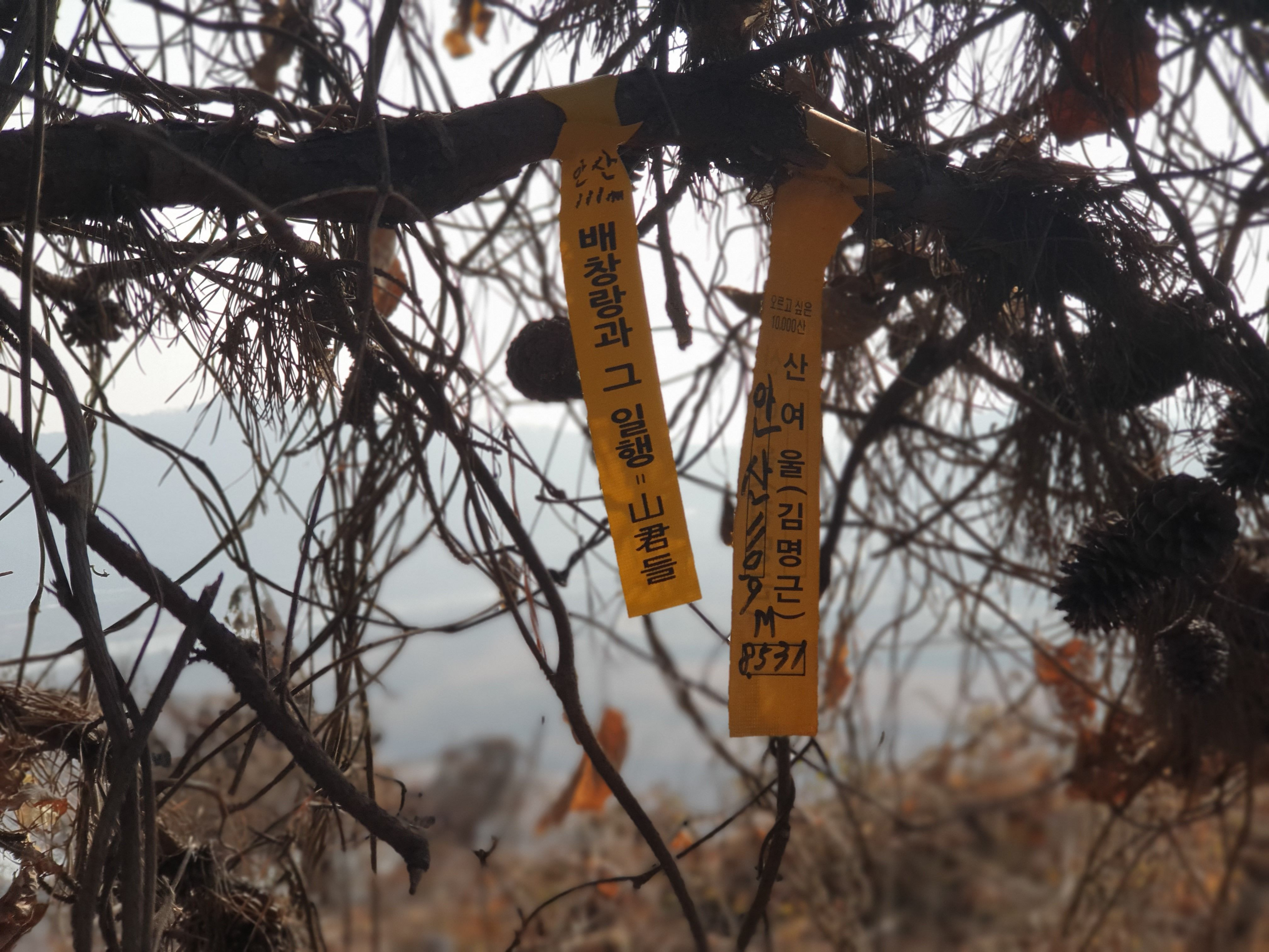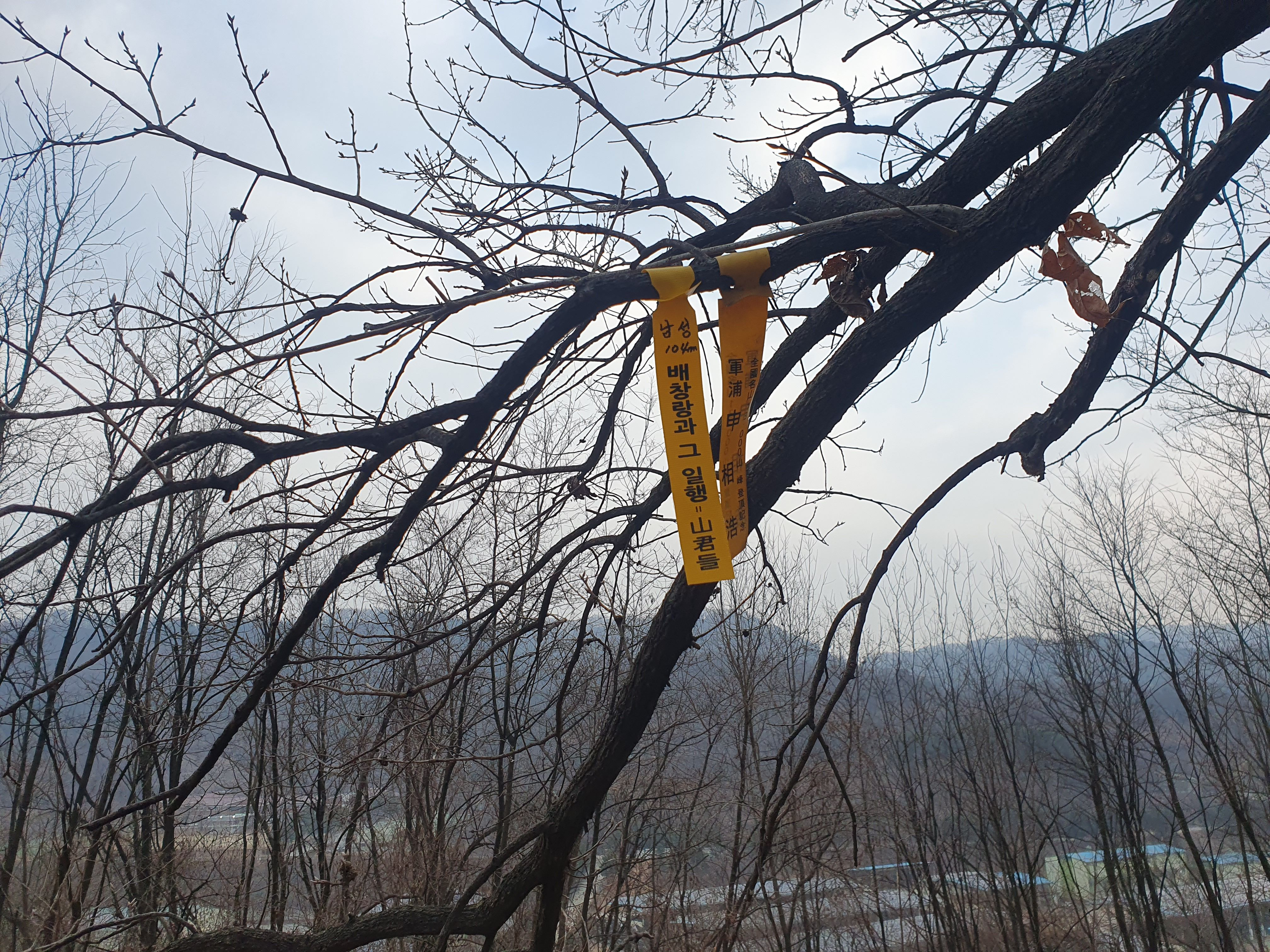 (12;31) 강산 정상 표지기"배창랑과 그 일행 =山君들" 부착합니다. 바람이 많이 불어 스틱으로 고정해도 ~~