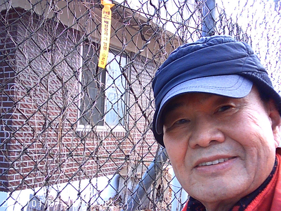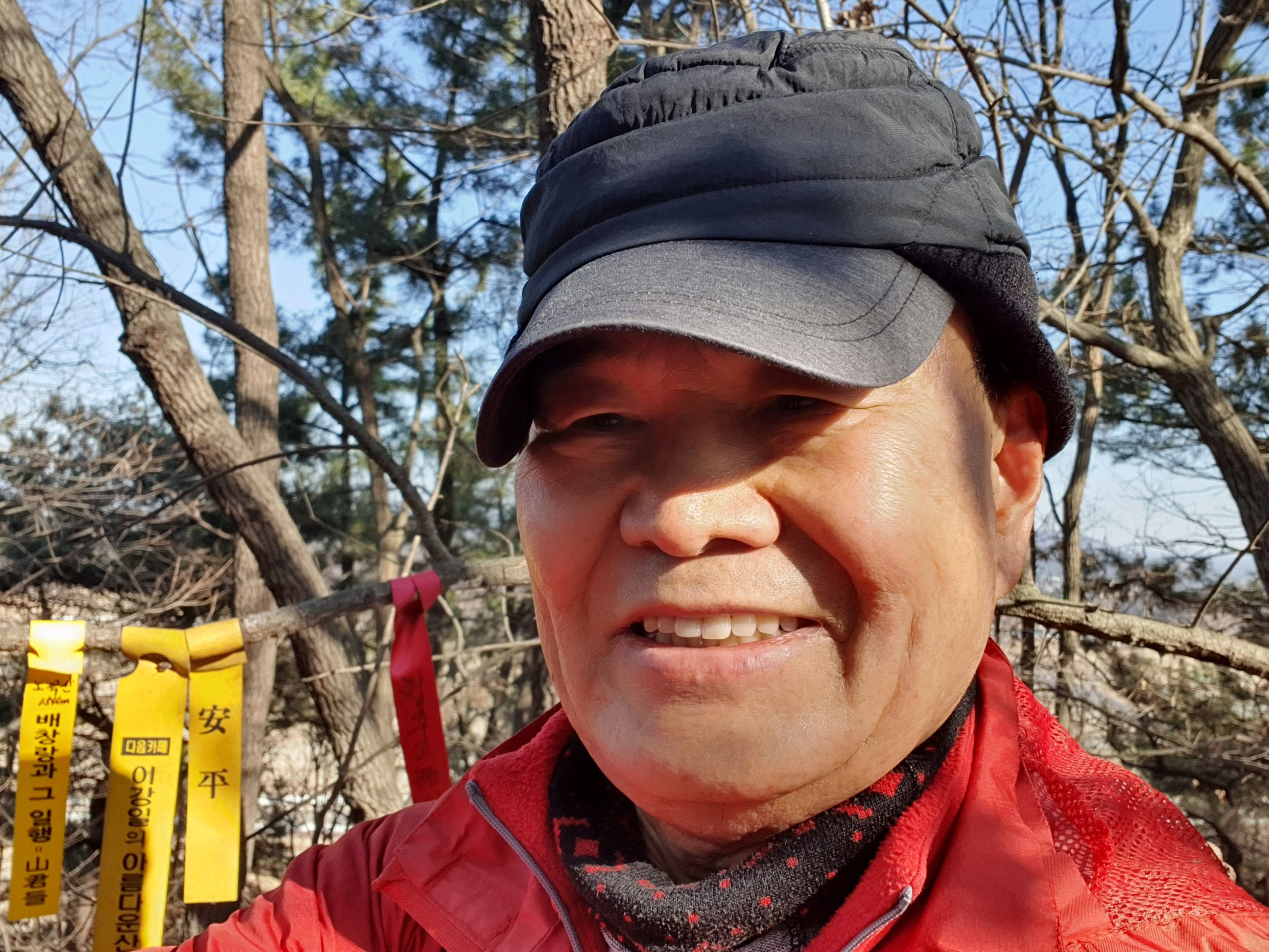 (09;35) 남성산(104m) 정상 신상호 님 13,000 산 때 표지기와"남성 104m 배창랑과 그 일행=山君들"표지기 걸린 정상 인증사진입니다