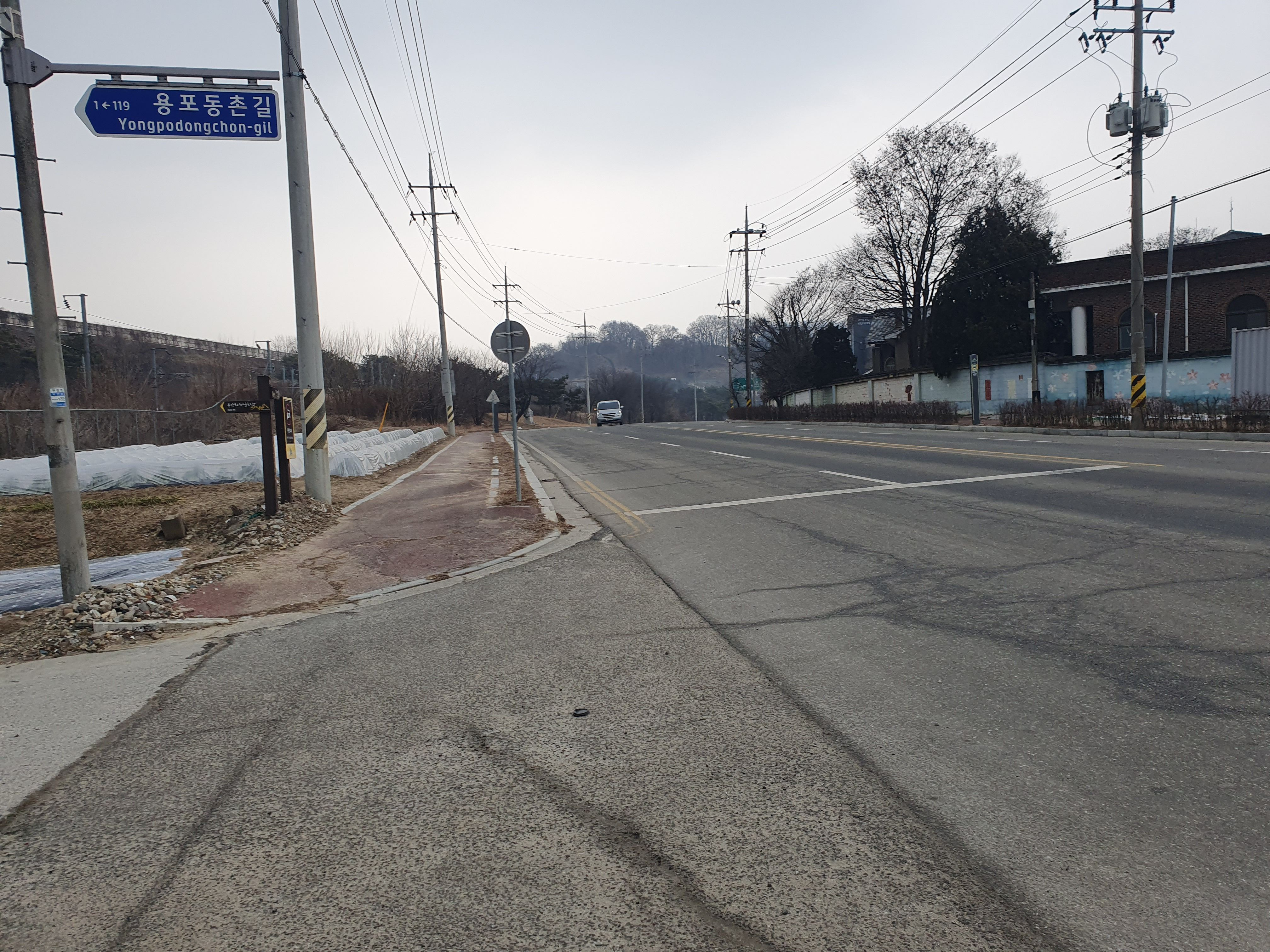 (09;07) 이정표 서있는 용포동촌길은 좌측으로 보내고 계속 직진합니다