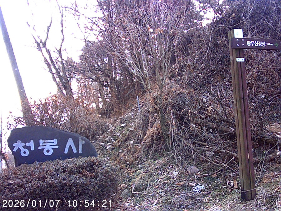 (10;54) 청봉사표지석과 이정표(황우산 정상 1.0km) 서 있는 황우산 들머리입니다