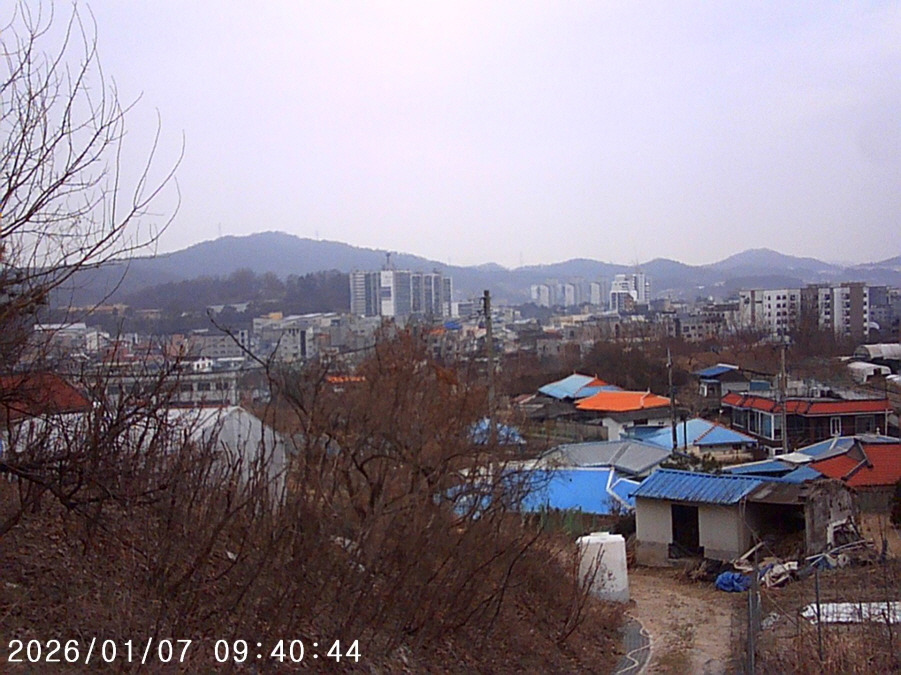 (09;40) 기여할 황우산이 높아 보이고 테뫼산성 (깃대봉) 도 우측에 보입니다