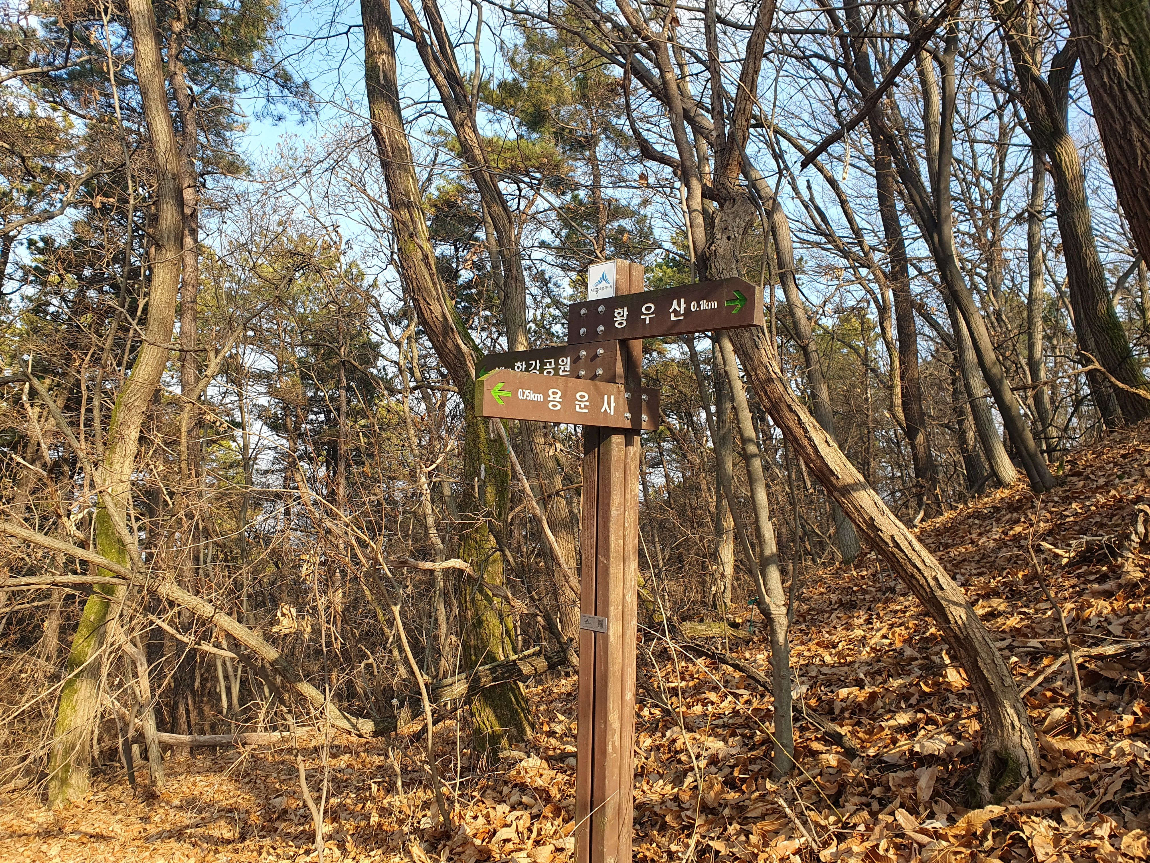 (11;33) 이정표(합강공원/용운사 0.75km/황우산 0.1km)에서 합강고원 방향으로 갑니다