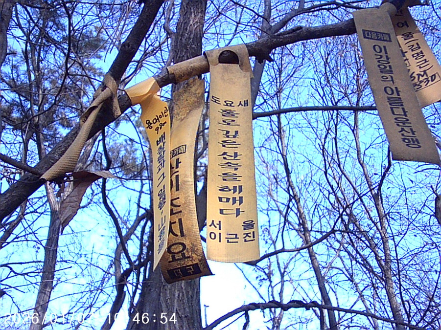 (10;16) 표지기 걸자리가 마땅히 없어 조금 밑 배수지 시설 철조망에 표지기"깃대봉 62m 배창랑과 그 일행=山君들" 걸고 인증합니다