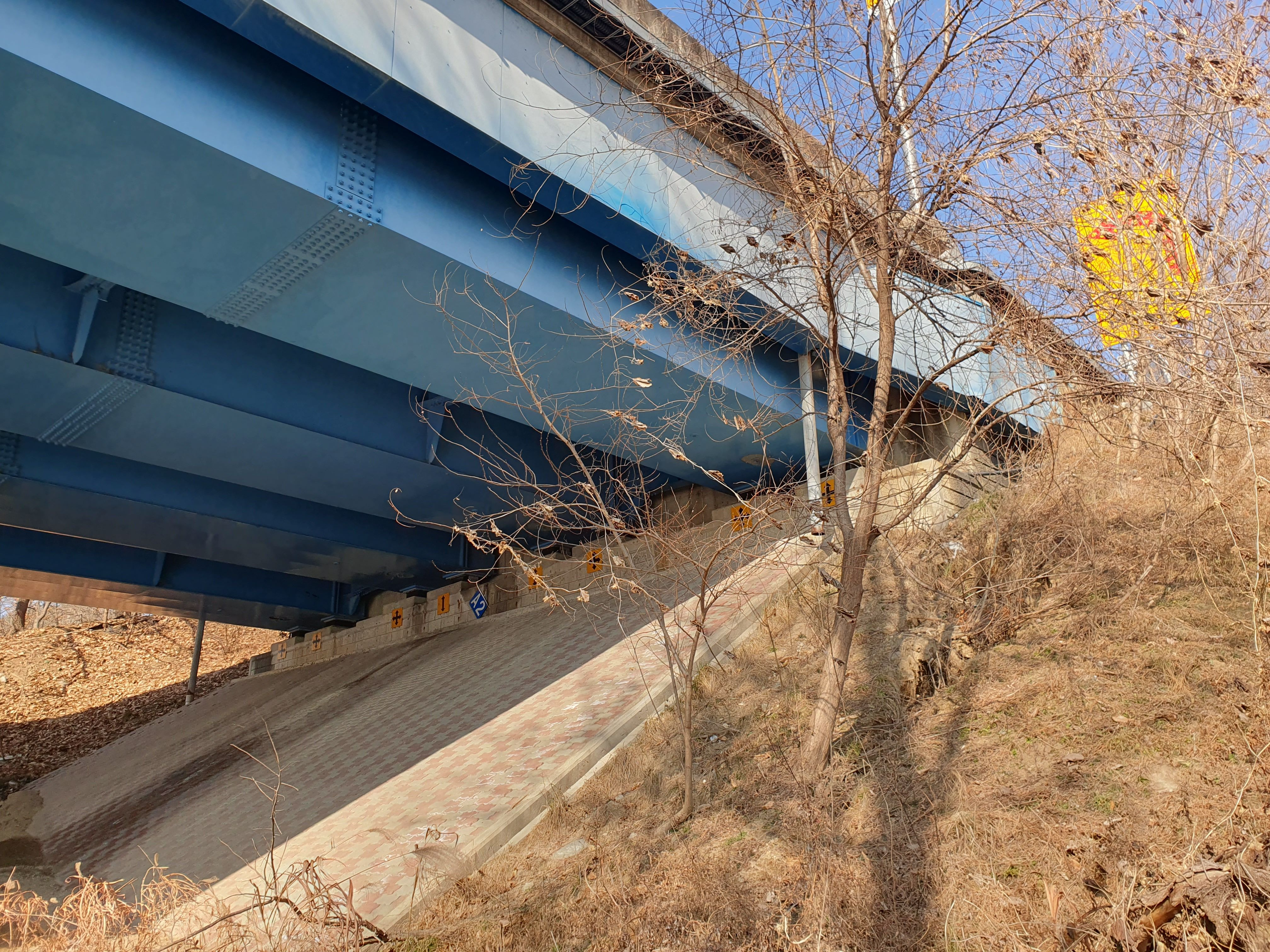 팔봉지 맥길 버리고 능선길 이어가 연청로 월산교 교각밑을 통과합니다