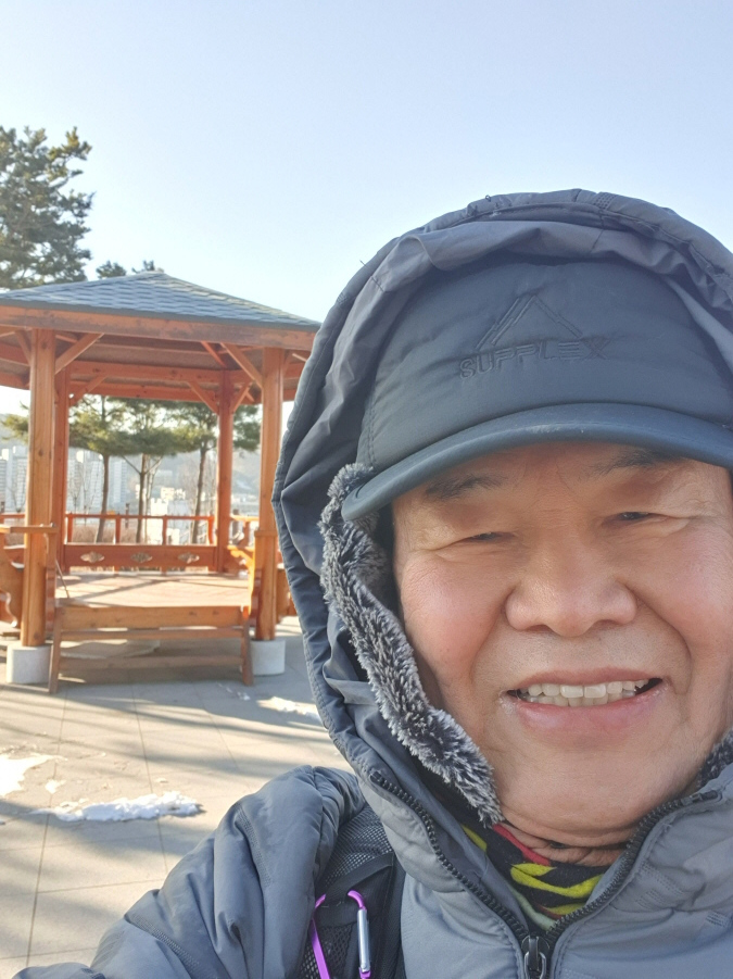 (09;37) 용담산(133m) 정상 정자 인증사진입니다.