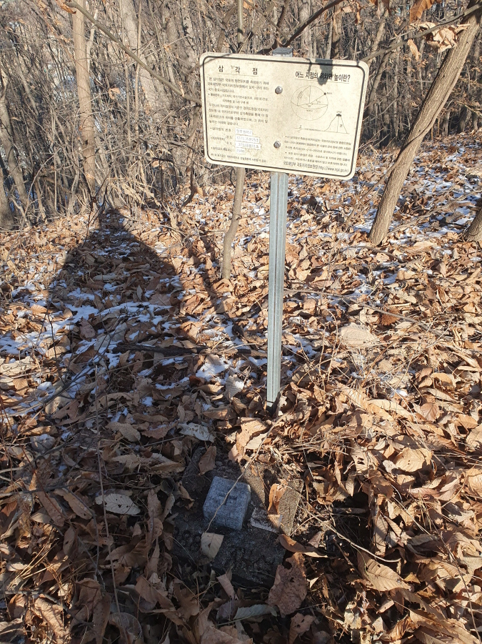(10;37) 깃대봉(151m 각 회봉) 정상 삼각점(장호원 457)과 그 설명판 인증사진입니다.입니다.