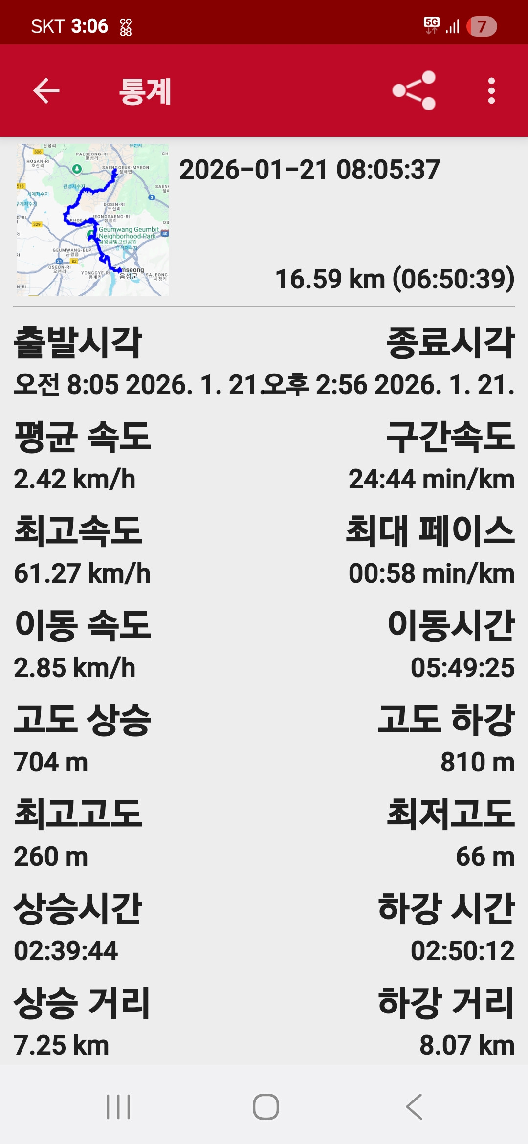 산행일자;2026년 01월 21일(수). 날씨; 맑음. 한파. 산행거리;16.6km. 산행시간; 6시간 50분(08;05~14;55)