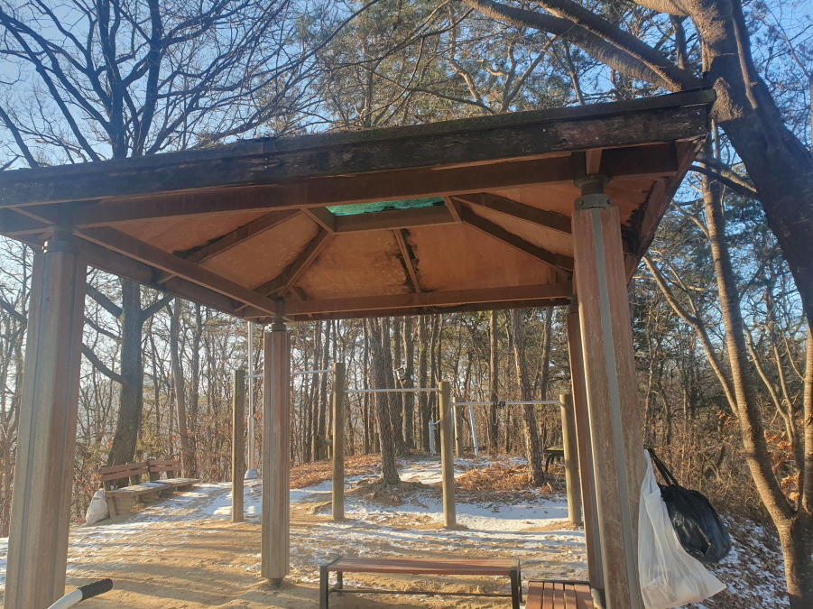 (08;50) 박산(207m) 정상 정자와 주민 운동기구들입니다.