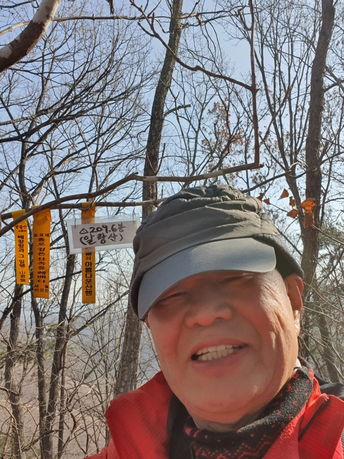 (11;16) 알랑산(210m) 정상 인증사진입니다.