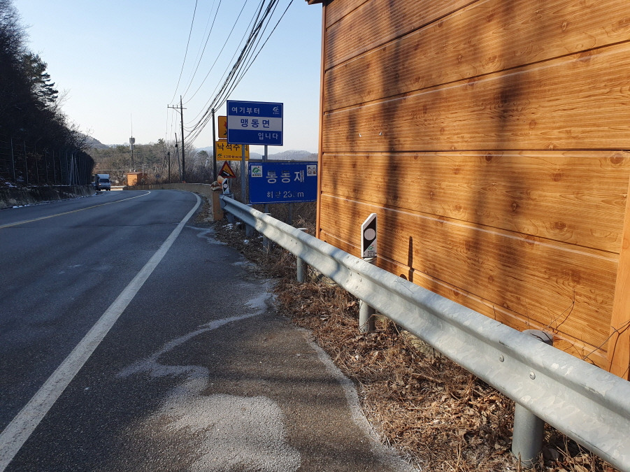 (09;56) 묘지와 맹동저수지 둘레길 도로입니다