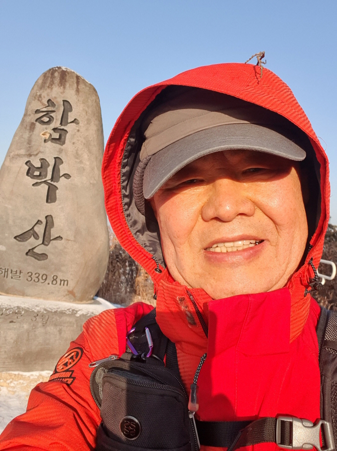 (08;50) 함박산(340m) 정상 함박산 정상석 인증사진입니다.